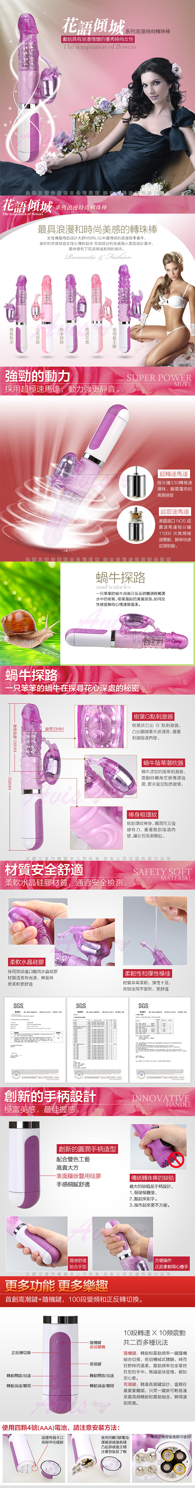 花語傾城-系列10x10段變頻防水轉珠按摩棒  五款 蜻蜓點水,心花怒放,蝸牛探路,鳥語花香,御用霸王花
