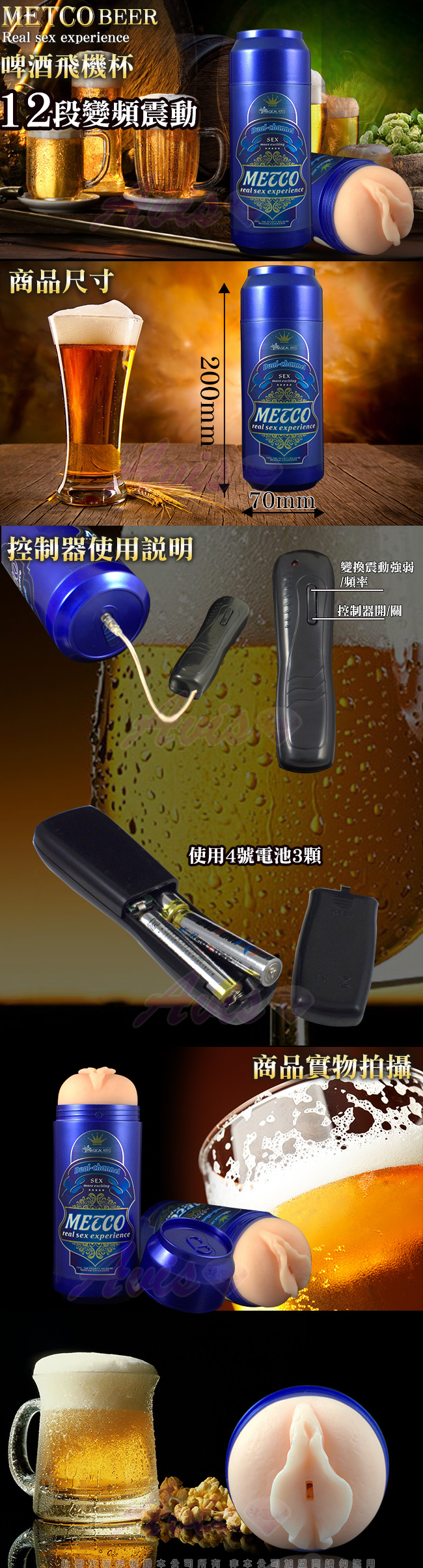 METCO BEER淡啤酒 12段變頻 啤酒罐造型男用電動自慰杯