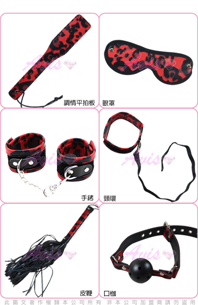 .商品名稱:APHRODISIA 愛之誓言 SM紅色豹紋套裝六件組-紅*1