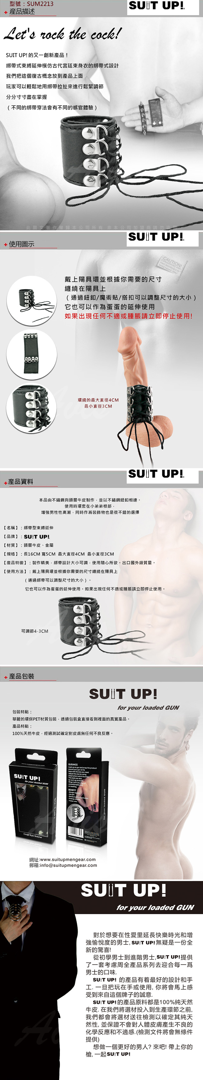 .商品內容:SUIT UP! SM情趣 綁帶型束縛延伸 陽具環 X1