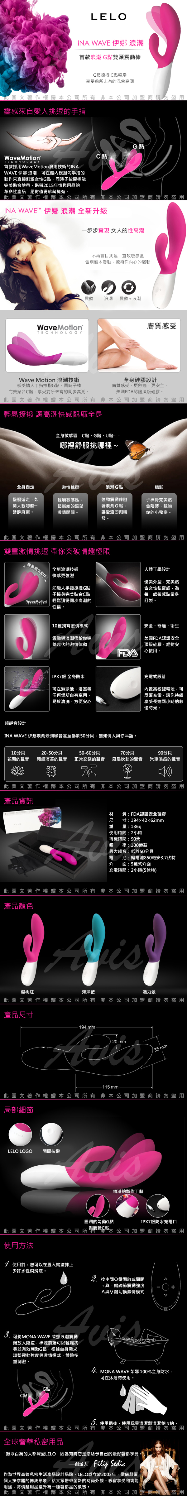 商品名稱:瑞典LELO INA WAVE 伊娜 浪潮 首創仿手指挑逗技術 雙震動G點按摩棒