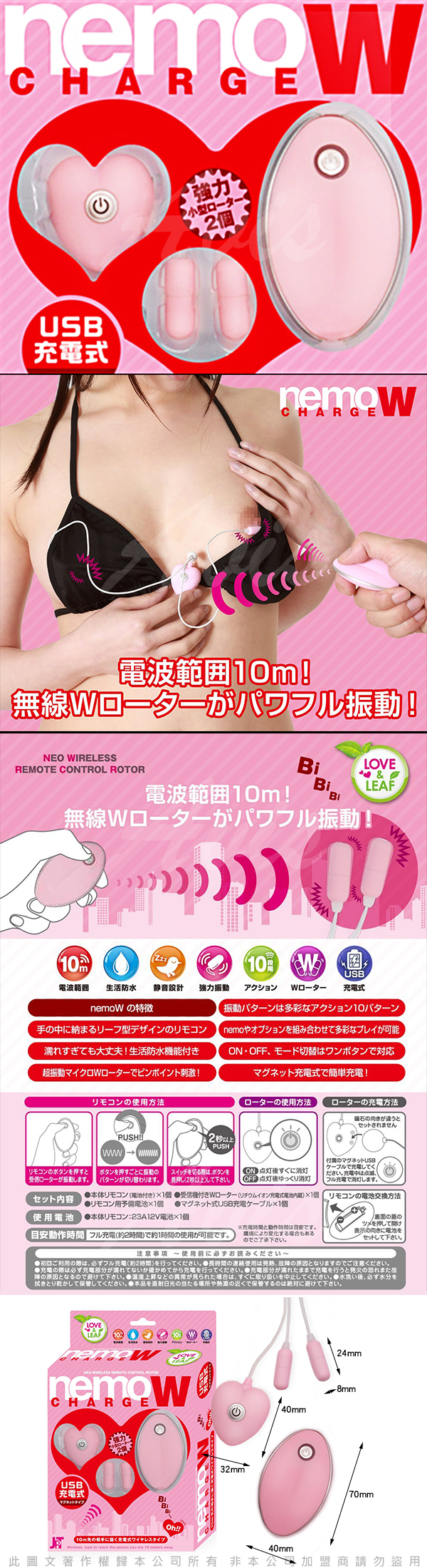 .商品名稱:日本JPT NEMO W 尼莫W 10段變頻 無線遙控雙跳蛋 粉