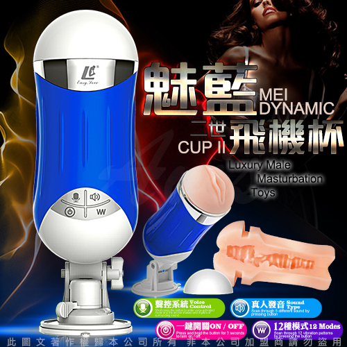 魅藍二世 真人發音+聲控 50頻震動 吸盤自慰杯 天空藍 USB充電