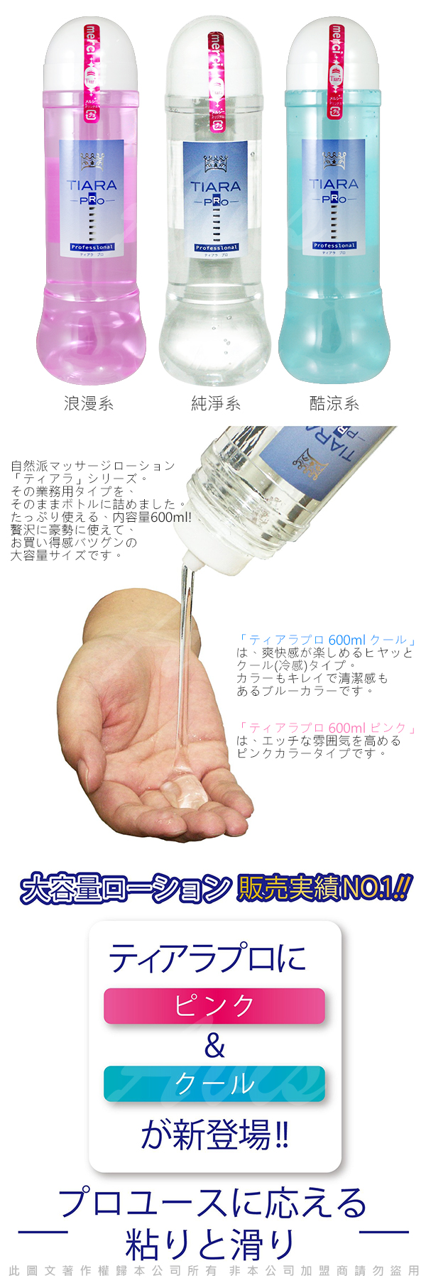 商品名稱:日本NPG Tiara Pro 自然派 水溶性潤滑液 600ml 浪漫系 情趣氣氛提升