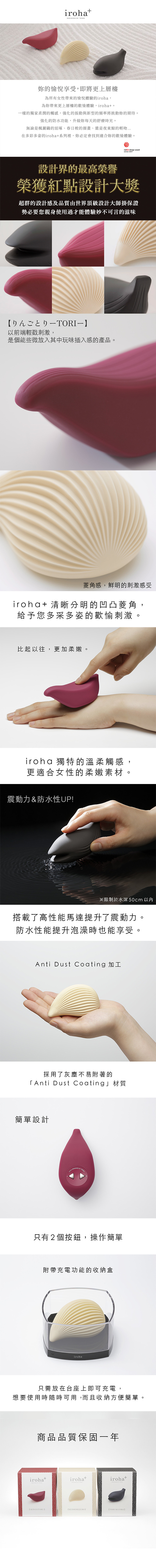 以可愛和風造型及柔軟手感作賣點的Iroha系列推出全新作品。採用軟觸感材料造,表面光滑且具細膩觸感。與肌膚配合度高,不會有黏膩或不自然的感覺 - 就像你的另一層肌膚
