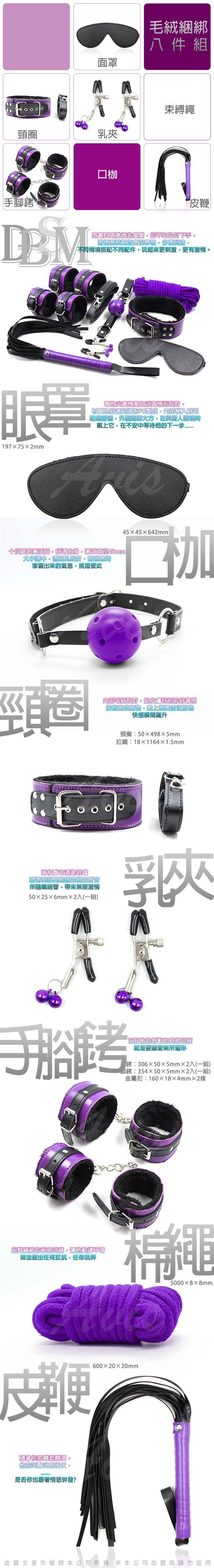 .商品內容:虐戀精品CICILY-束縛遊戲-毛絨綑綁 八件套組-紫