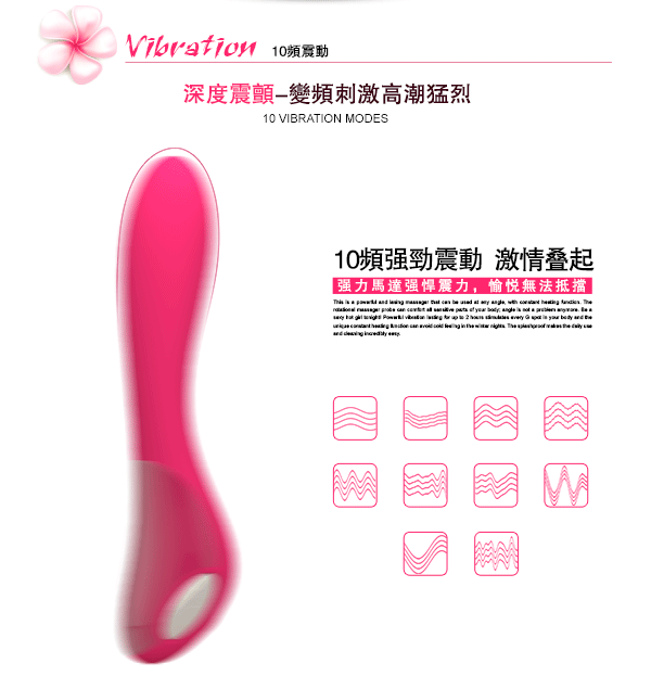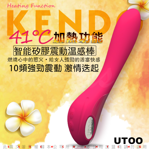 .主商品:香港UTOO KENDO 41度C智能矽膠10段變頻震動溫感棒 桃紅