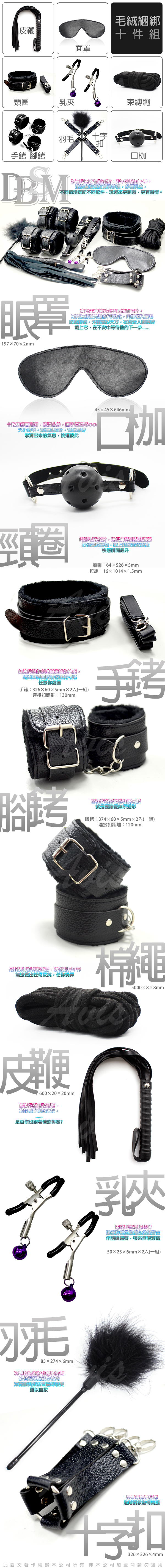 虐戀精品CICILY-無禁的愛 手銬/腳銬/繩子/鞭子/眼罩/脖子套/口塞/乳夾/羽毛/十字扣 十件組 黑