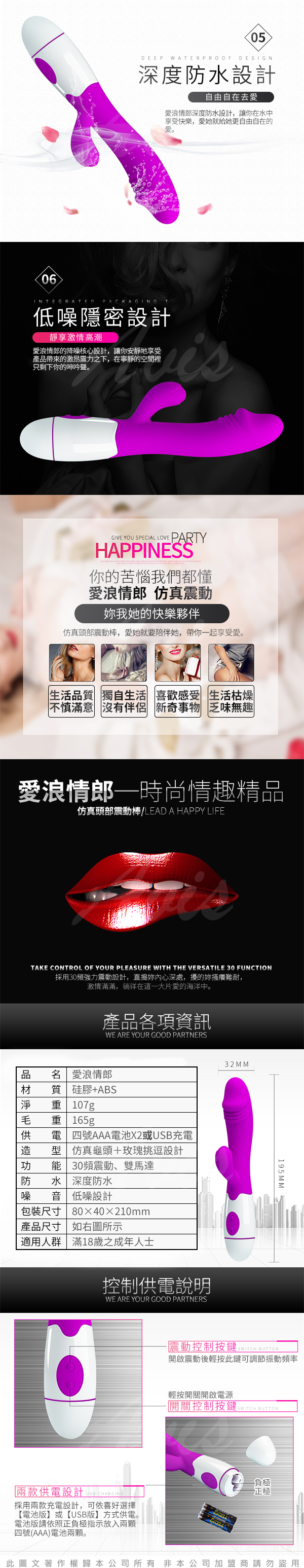 .商品內容:愛浪情郎 高端時尚30頻電動按摩棒