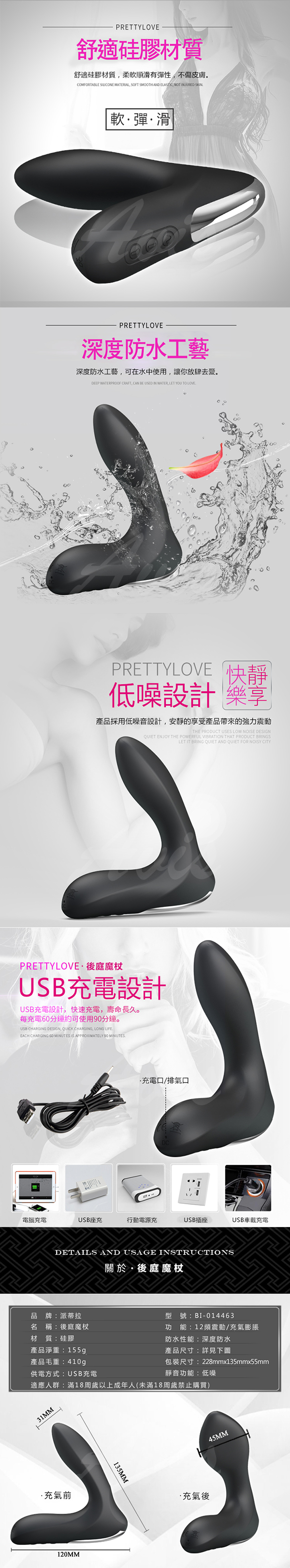 強勁震動馬達,硅膠材質,後庭按摩震動,頭部充氣膨脹,充實後庭愉悅體驗