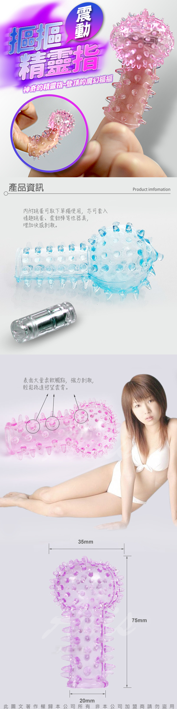 .主商品:摳摳精靈指 矽膠全方位指套 震動款