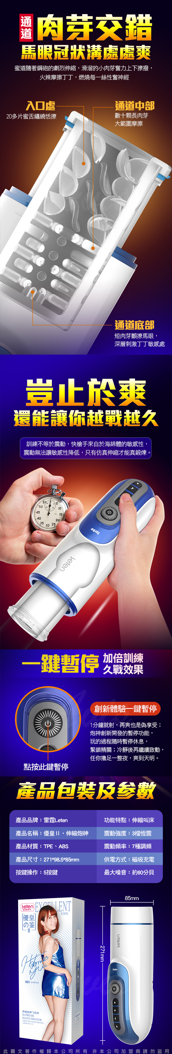 .主商品:LETEN 優皇Ⅱ 2代 伸縮炮神 波多野結衣代言 加溫+智能互動發音+伸縮抽插 全自動飛機杯