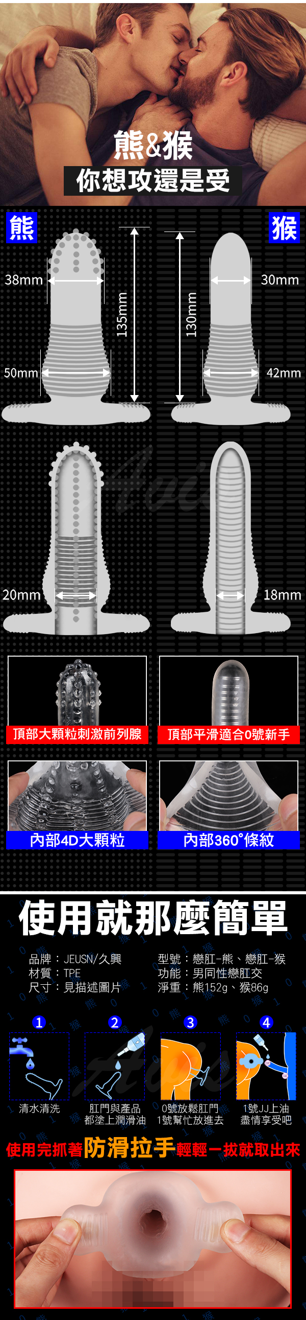 .主商品:久興 安全肛交 戀肛水晶套 頂部平滑 猴款
