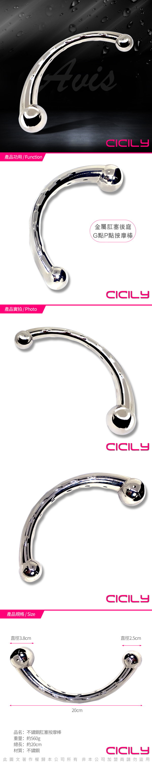 .主商品:虐戀精品CICILY金屬前列腺G點後庭顆粒按摩棒
