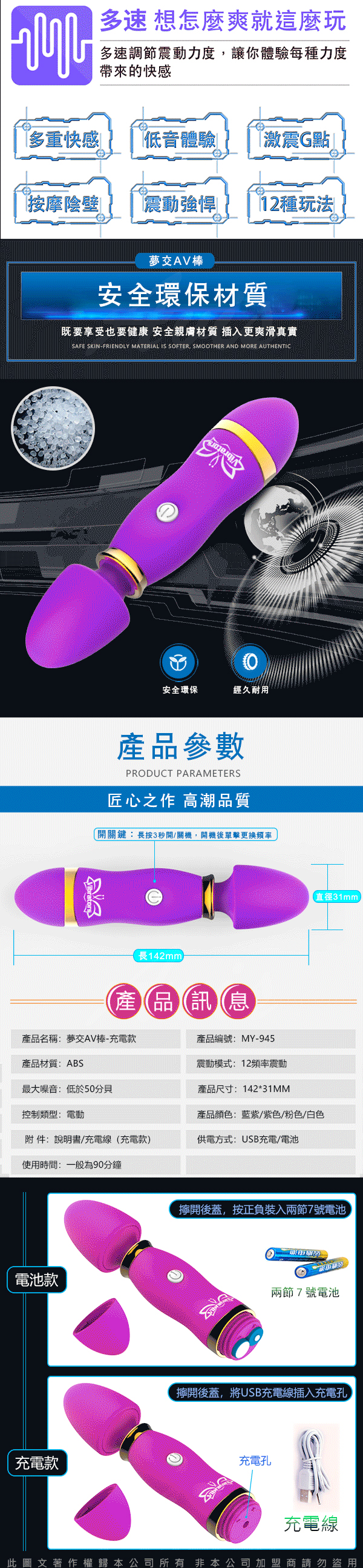 .主商品:夢交 12段變頻 AV女優按摩棒 UBS充電 白色