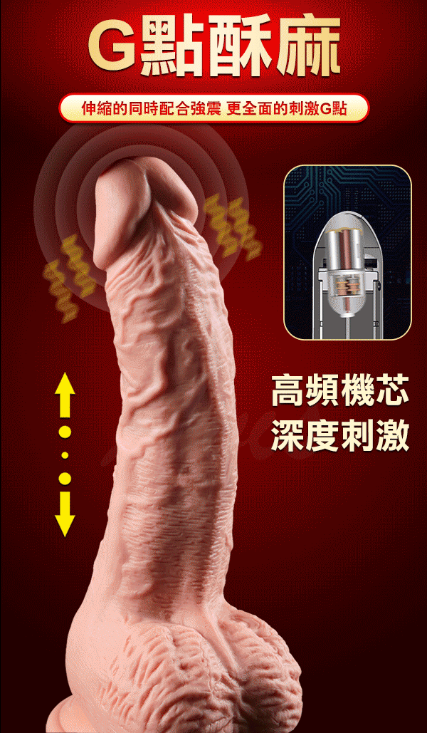 香港久興-肌肉真莖 全自動活塞USB供電 10頻震動逼真老二棒