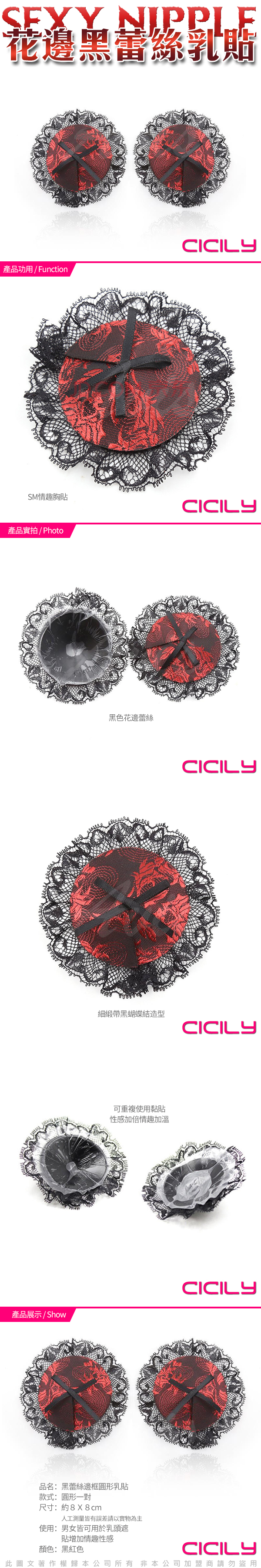 .主商品:CICILY 蕾絲黑花邊 蝴蝶結 胸貼 乳貼