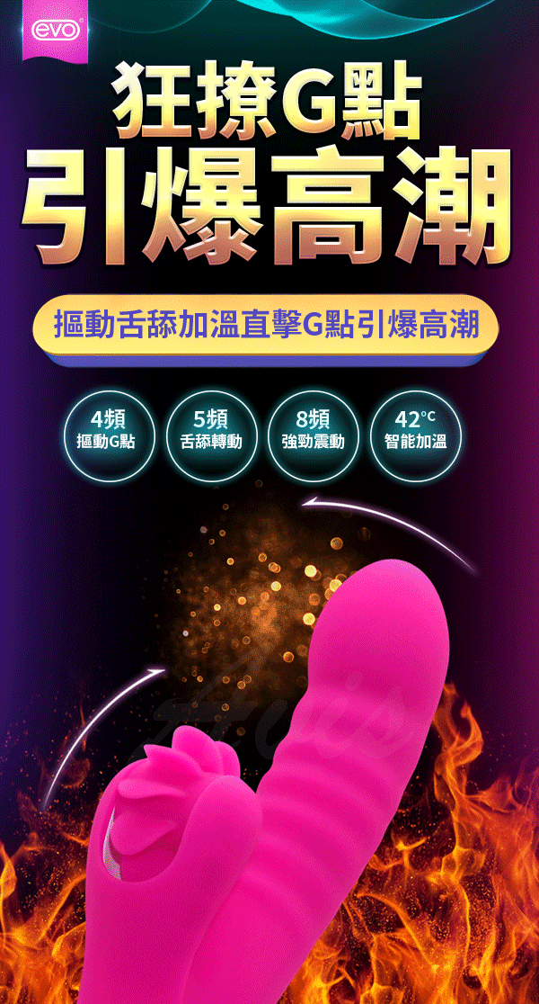 .主商品:EVO-Corley蔻莉 摳動舌轉加溫震動按摩棒