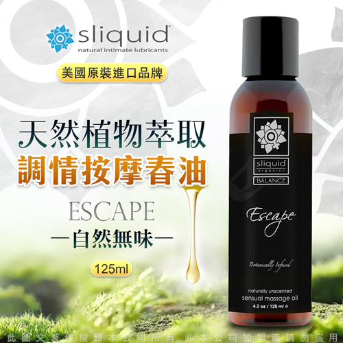 美國Sliquid-Escape 逃逸 天然植物萃取 調情按摩油 125ml-自然無味