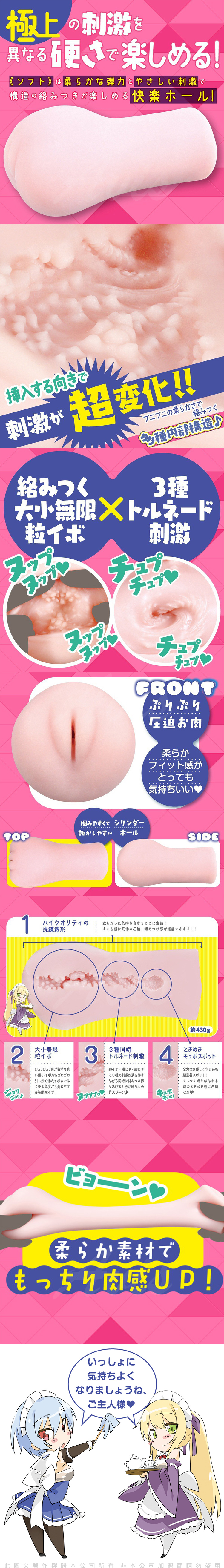 柔軟的彈性只要稍為擰緊即可享受到飛機杯的糾纏快感!