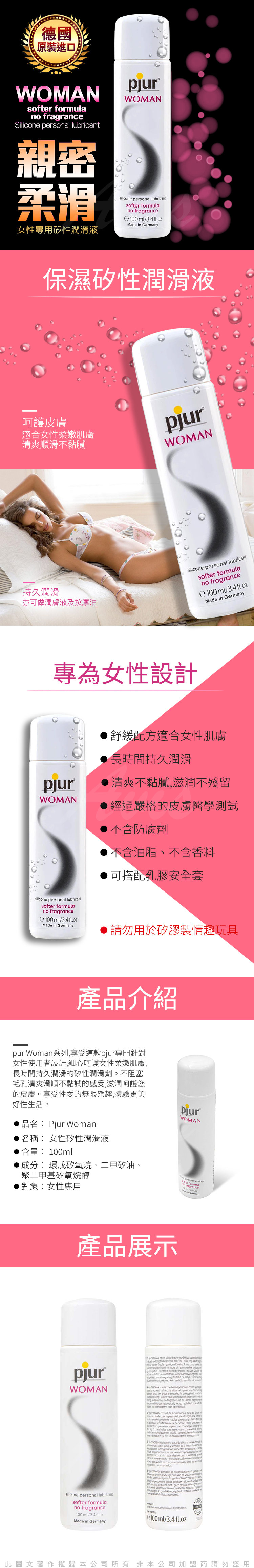 .商品名稱:德國Pjur Woman 女性專用 矽性潤滑液 100ml