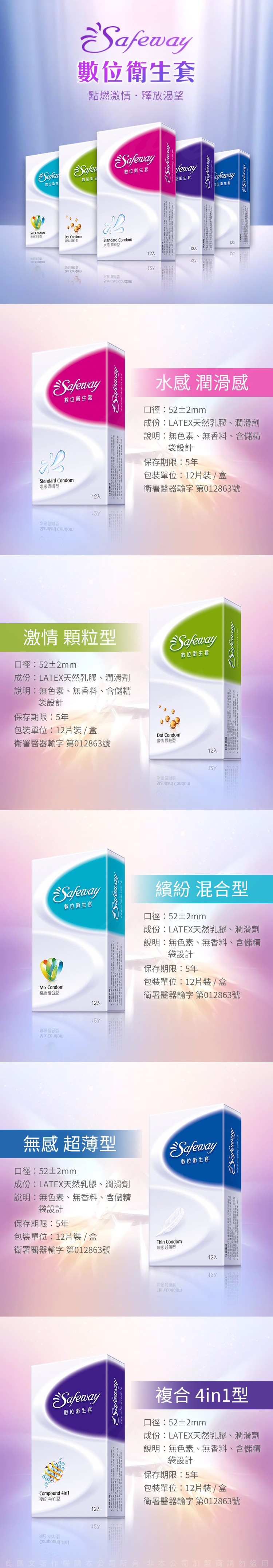 繽紛混合型衛生套(12入裝) - 顆粒.超薄.潤滑三種於一盒。