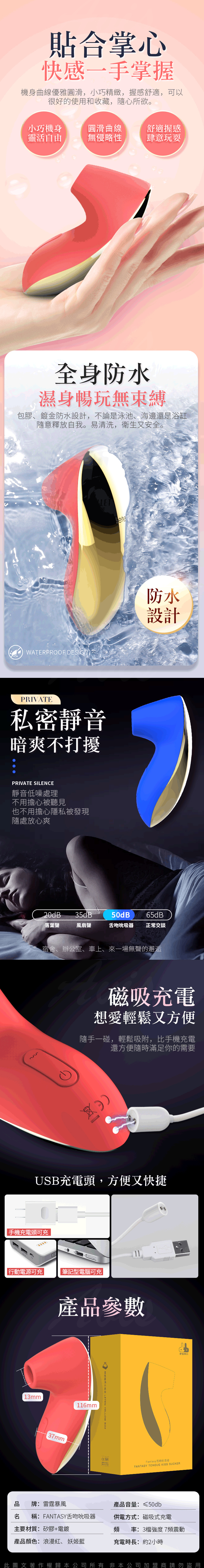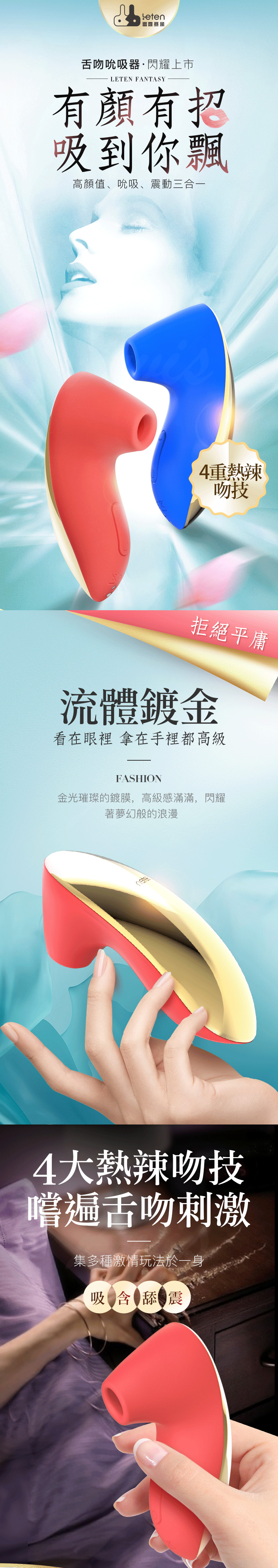 名稱:Leten-FANTASY 舌吻 3檔7頻防水吸吮器