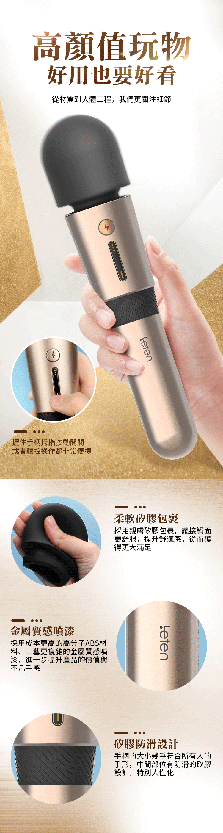 採用親膚矽膠包裹,讓接觸面,更舒服,提升舒適感,從而獲得更大滿足