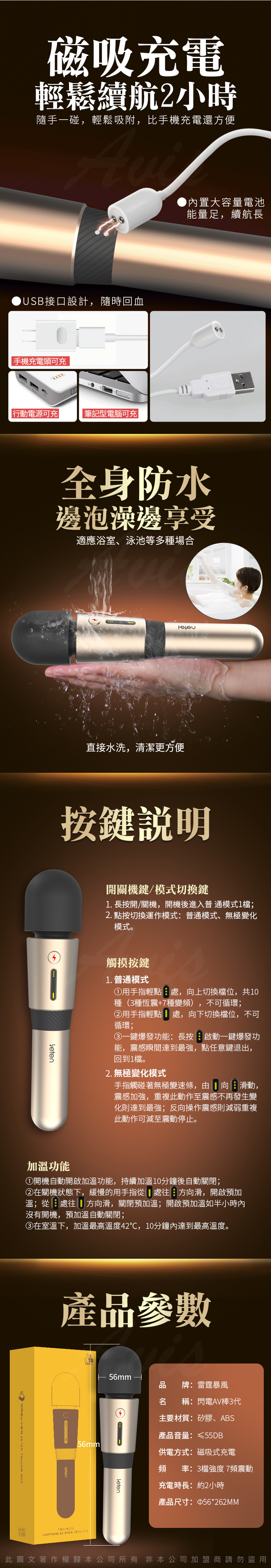 名 稱:Leten-閃電AV棒3代 3檔7頻智能加溫震動按摩棒