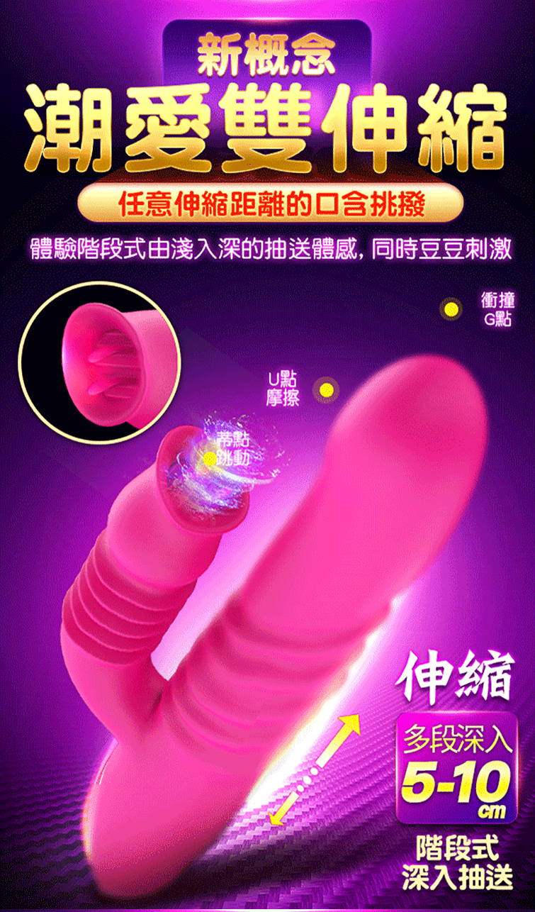 商品名稱:Dibe-雙龍戲水 7段變頻雙伸縮靈舌震動加溫矽膠按摩棒