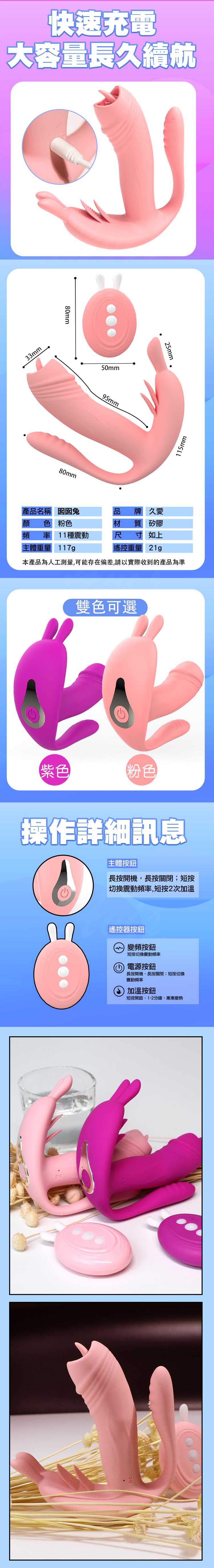 久愛-囡囡兔三舌震舔11段變頻加溫遙控震動器
