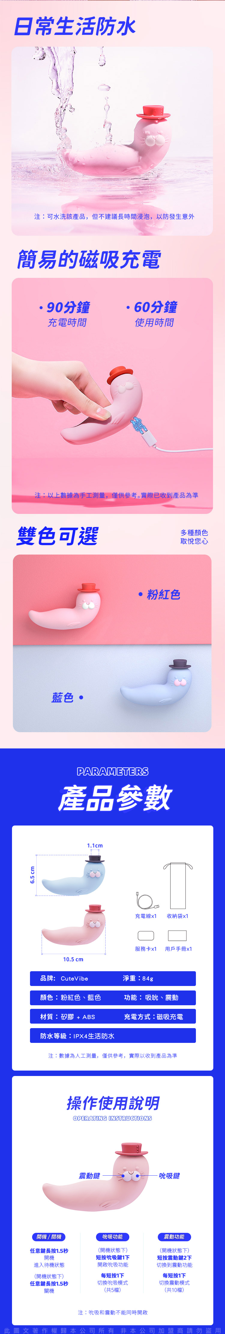 名稱:Cutevibe-小嗨豹雙用吸吮震動按摩器-藍色