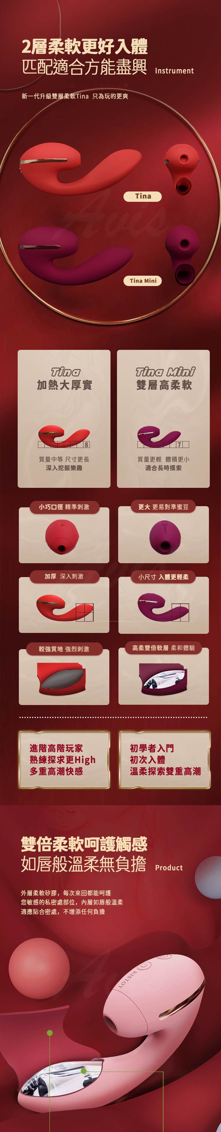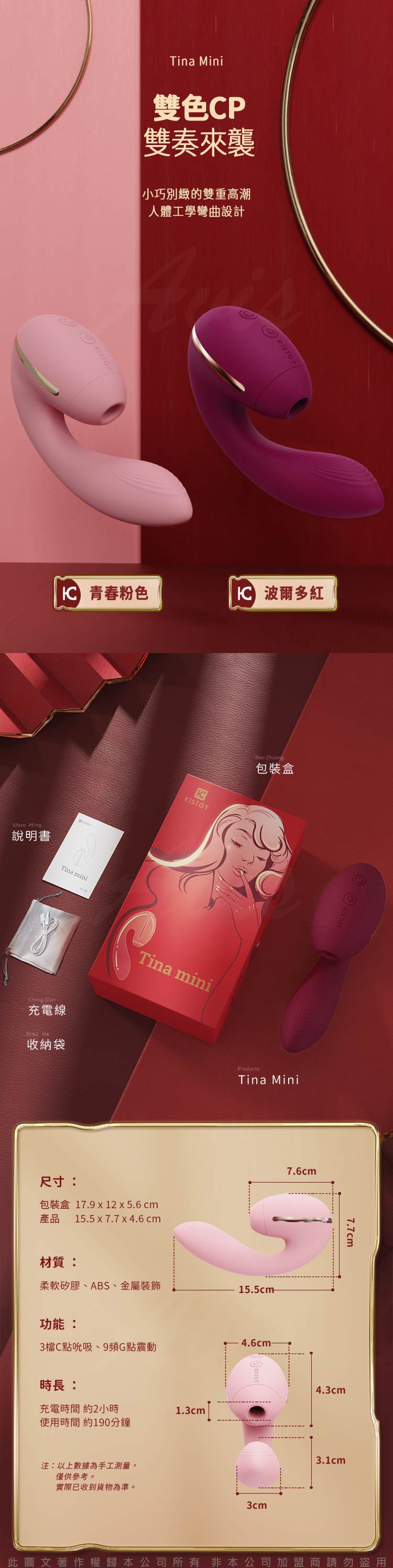 名稱:KISTOY-TINA MINI 蒂娜迷你 雙重高潮 智能加溫 吸吮震動 按摩棒