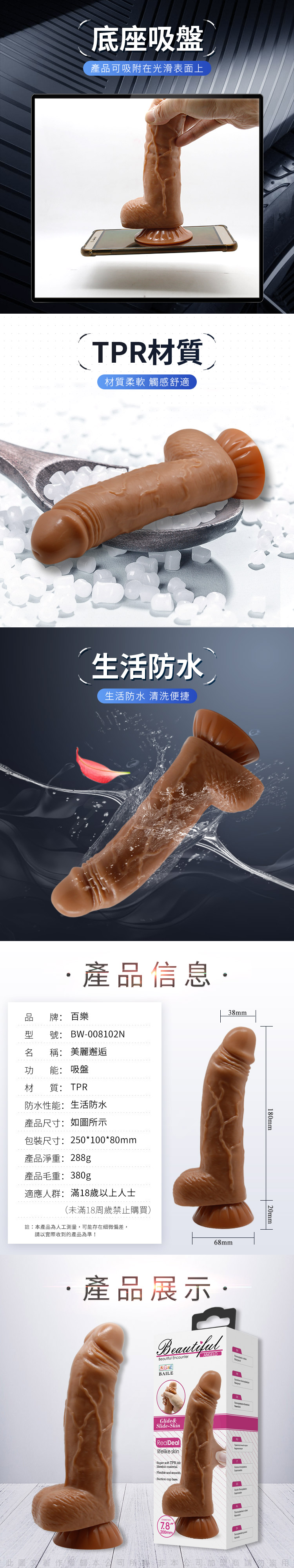 名 稱:猛戰龍根 皮肉分離 7.8吋逼真老二陽具按摩棒