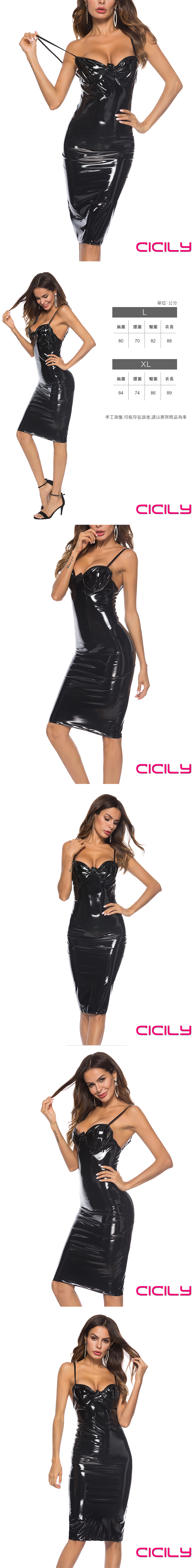 .主商品:CICILY 獸性女王 性感吊帶連衣裙鏡面 漆皮膠衣 黑 L
