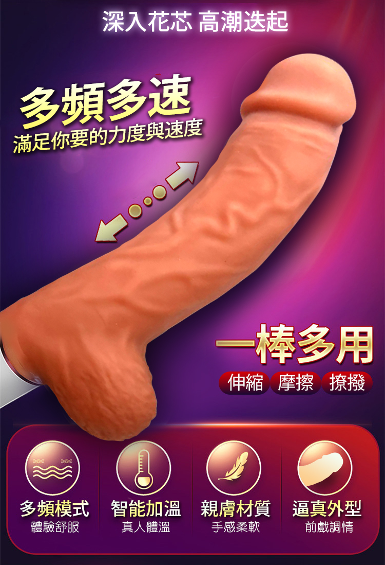 產品名稱:彎刀戰神 智能加溫 伸縮震動按摩棒