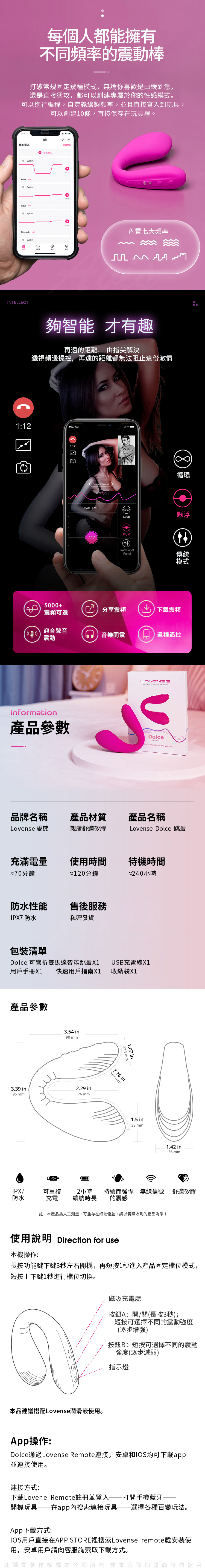 產品名稱:Lovense Dolce 可彎折 智能雙重刺激 G點 按摩棒 可跨國遙控