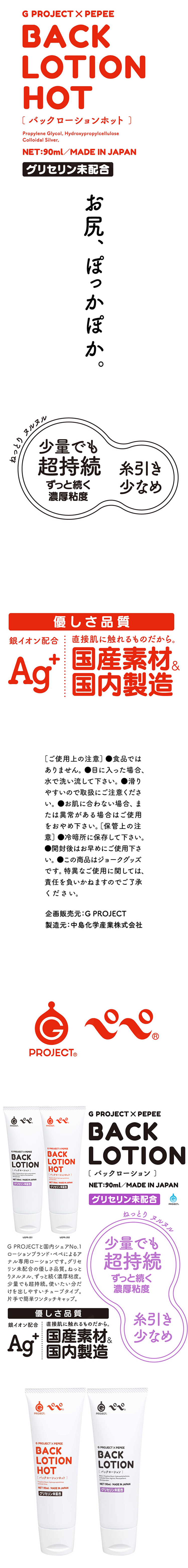 EXE - G Project x Pepee BACK 後庭溫感潤滑液 90ml,不含甘油不刺激的溫和特性,專為後庭而制的潤滑油,