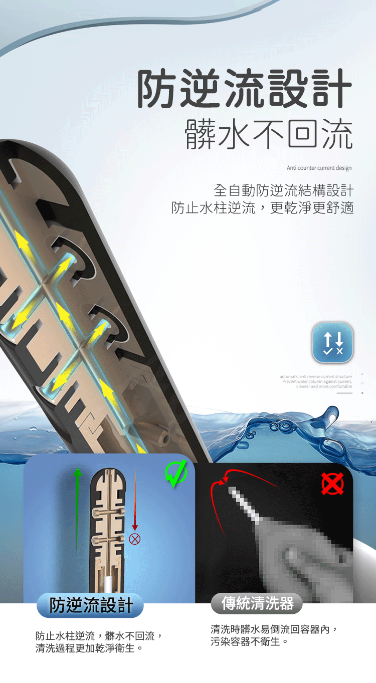 防止水柱逆流,更乾淨更舒適