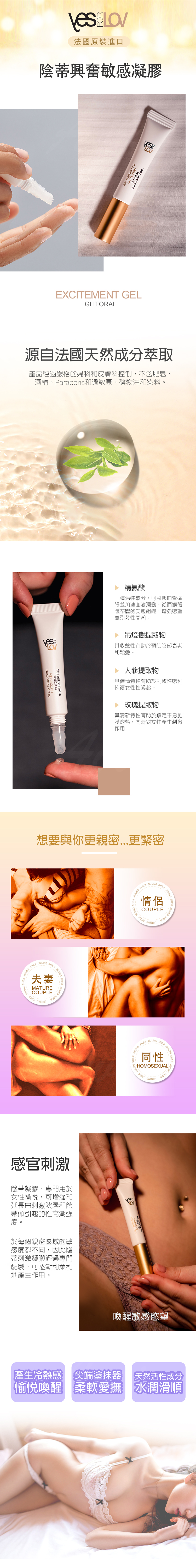 感官刺激陰蒂凝膠,專門用於女性愉悦,可增強和延長由刺激陰唇和陰蒂頭引起的性高潮強度。