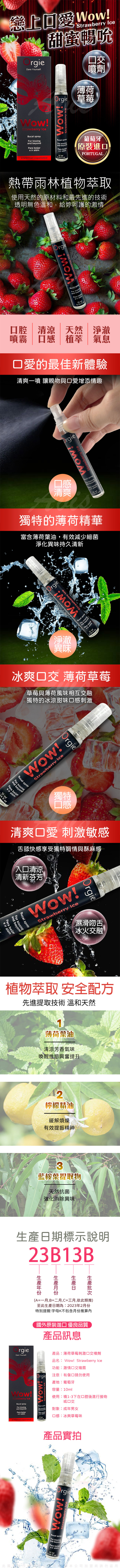 品名:Orgie|Wow! Strawberry Ice Bucal spray|薄荷草莓口交噴霧 10ml