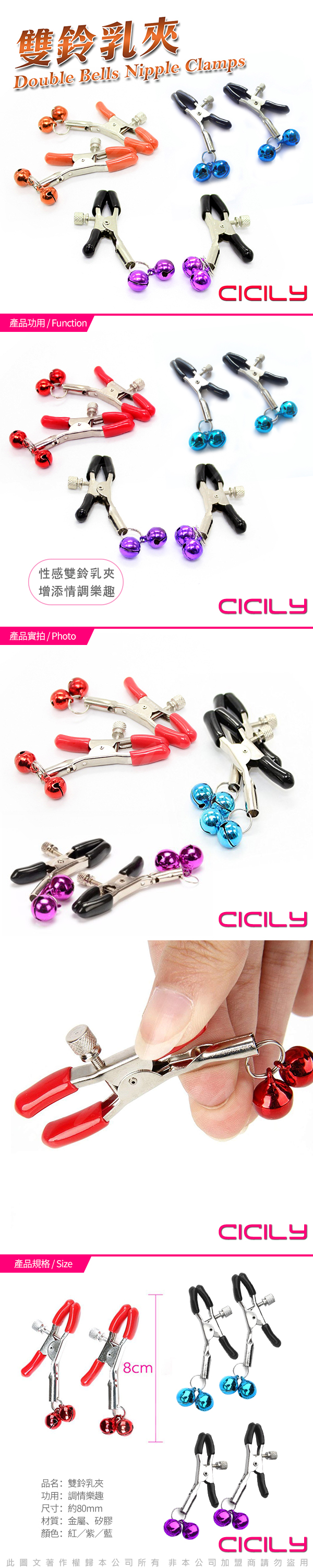 .商品內容:CICILY 雙鈴鐺乳夾-紫