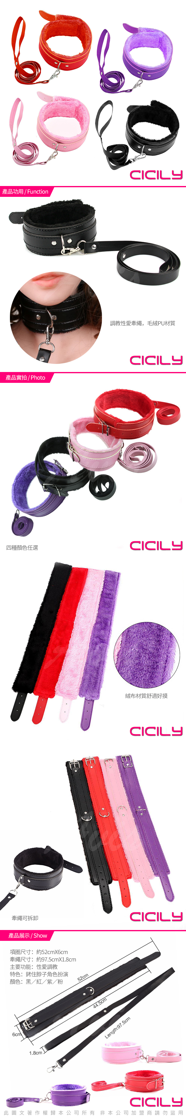 .商品內容:CICILY 毛絨調教項圈-紫