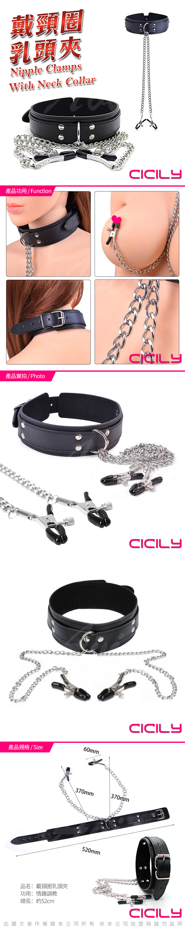 .商品內容:CICILY 頸圈乳夾調教