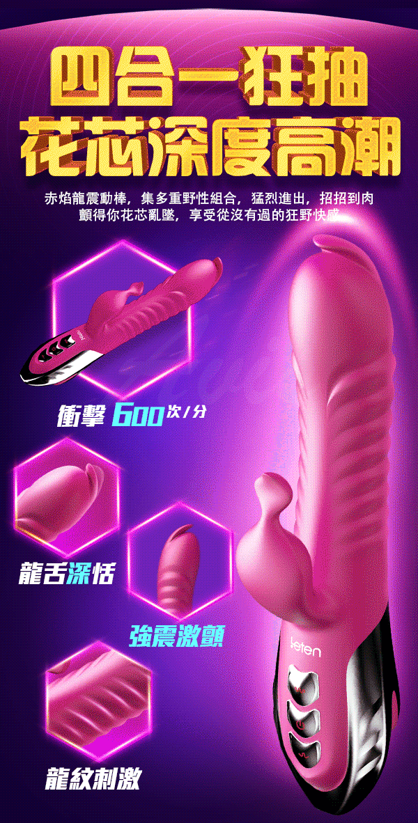 赤焰龍震動棒,集多重野性組,猛烈進出,顫得你花芯亂墜,享受從沒有過的狂野快感
