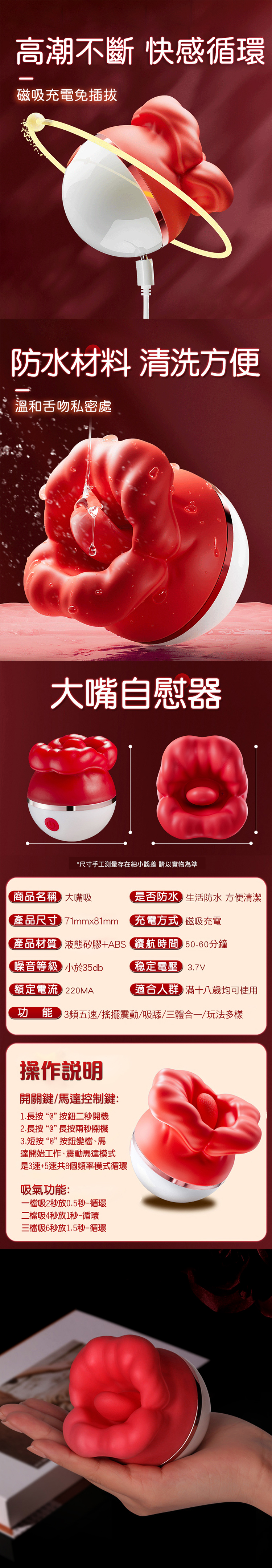 商品功能:震動、舌舔、吮吸