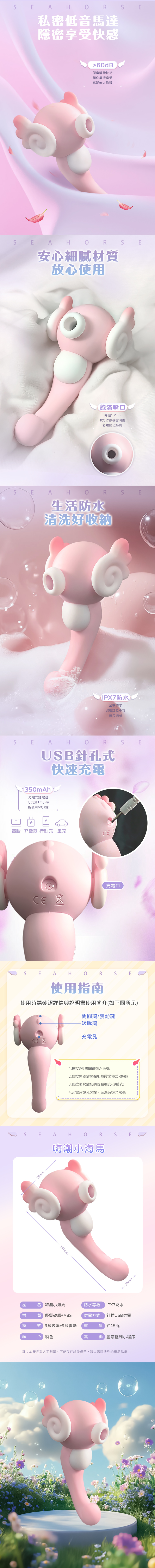 商品名稱 可愛小海馬|舔吸震動棒|粉色 智能版