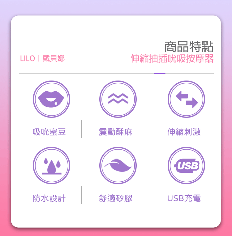 品名:LILO|戴貝娜無線遥控|伸縮抽插吮吸按摩器 粉