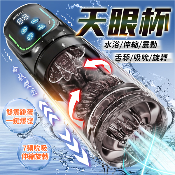 天眼飛機杯|舔伸縮震動旋轉吸吮|多功能電動飛機杯 透黑色