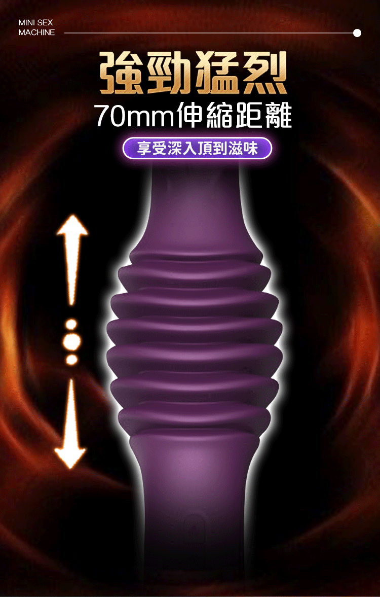 以「力量 × 節奏 × 深度」為核心打造的紫焰炮機,透過 70mm 大幅度伸縮。
